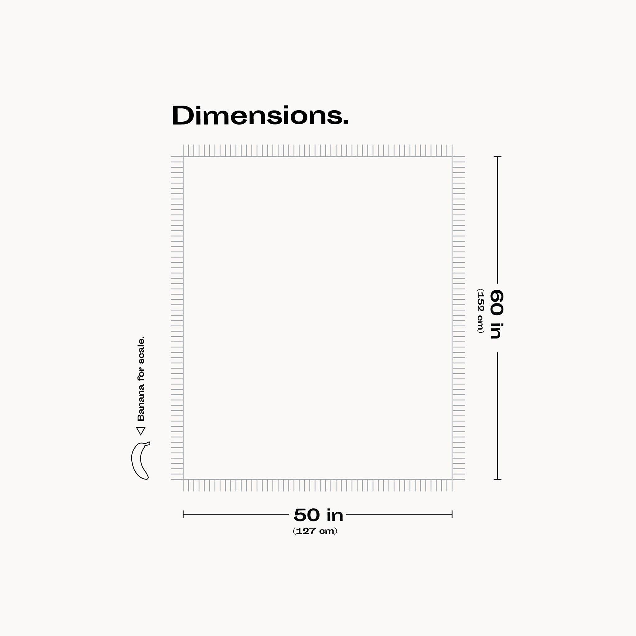 50 x 60 inches (127 x 142.4 cm) Made of 50/50 recycled cotton and recycled polyester Machine wash cold. Tumble dry low. Do not bleach.