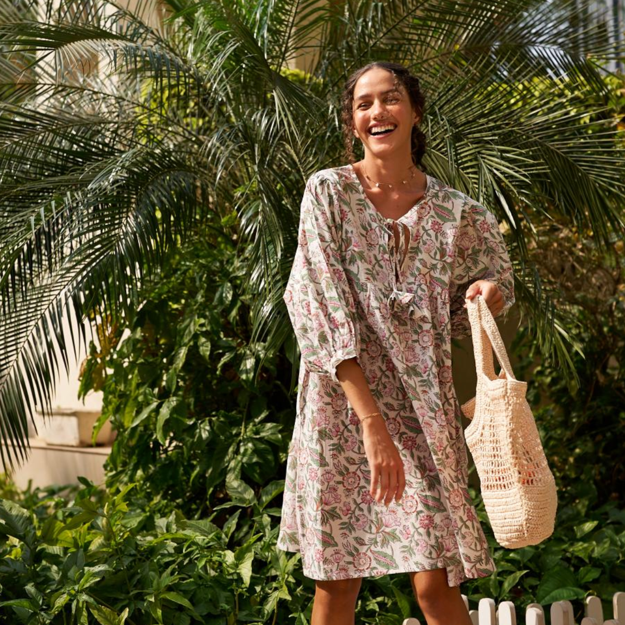 The enchanting Devi Dress is a fusion of elegance and bohemian charm. The focal point of this dress lies in its whimsical tassels, billowy sleeves, and mango wood buttons that provide a sense of drama and romance. Flowy and comfortable, perfect for roaming around your garden or a day in the city.