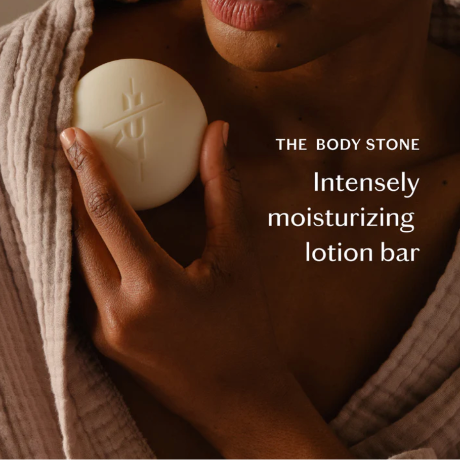 How to Use: Start with warm, dry skin ideally after a bath or shower. Prep the Body Stone for use by cupping it between your palms so it begins to soften with your body heat. Glide the Stone directly across your skin. As it melts, your skin will absorb the nourishing ingredients. Gently massage the luxurious oils into your skin. Take this moment to reconnect with your body and become more fully present in yourself.