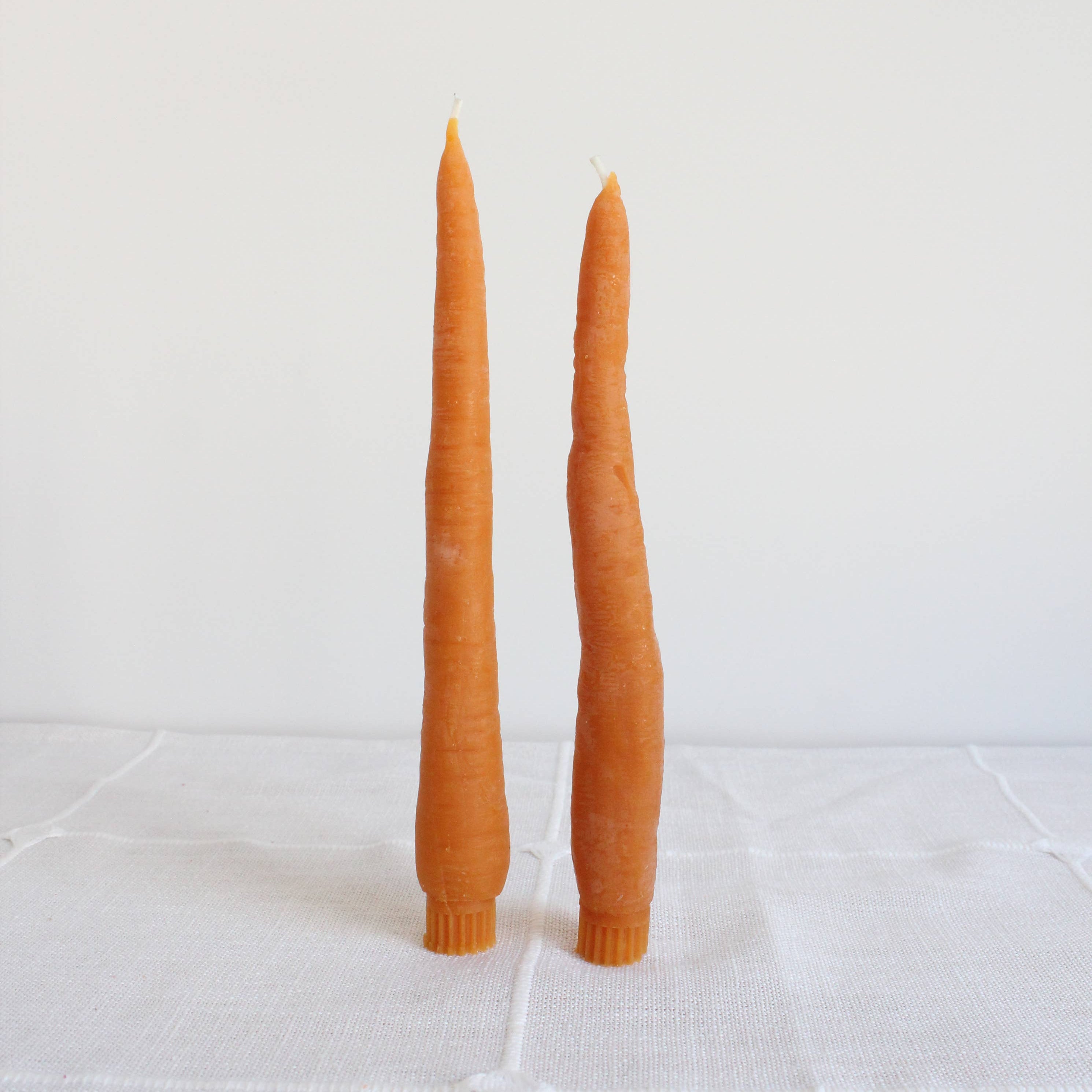 These vibrant, whimsical carrot candles are handmade using 100% beeswax, cotton wick, eco-friendly dyes and molded from a real carrot pulled from the earth (or farmers market bin). They’re clean-burning and unscented for simple, striking ambiance. This set of two makes a charming addition to any dinner party table, kitchen island, quirky shelf, or for that perfect persons birthday.