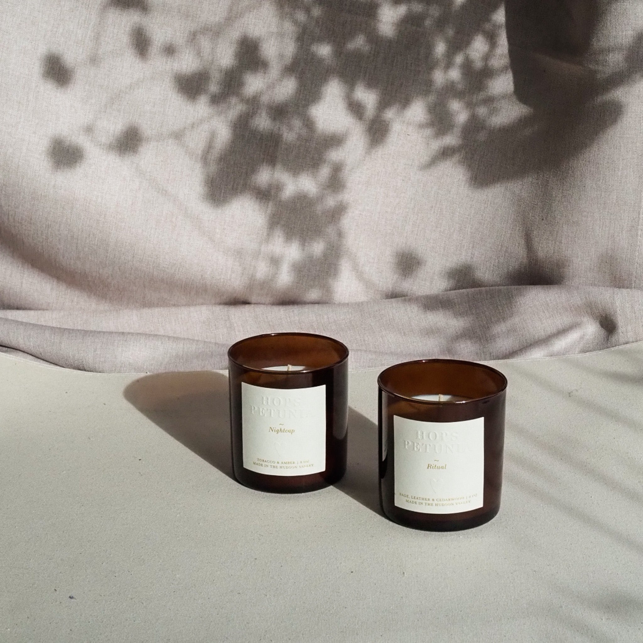 All candles are hand-poured here in the Hudson Valley using 100% natural ingredients: pure essential oils, soy wax, and natural cotton wick. The amber glass and sturdy lid make this an easy gift for you and yours. Available in 2 scents. 8oz. Estimated burn time: 40 hours.