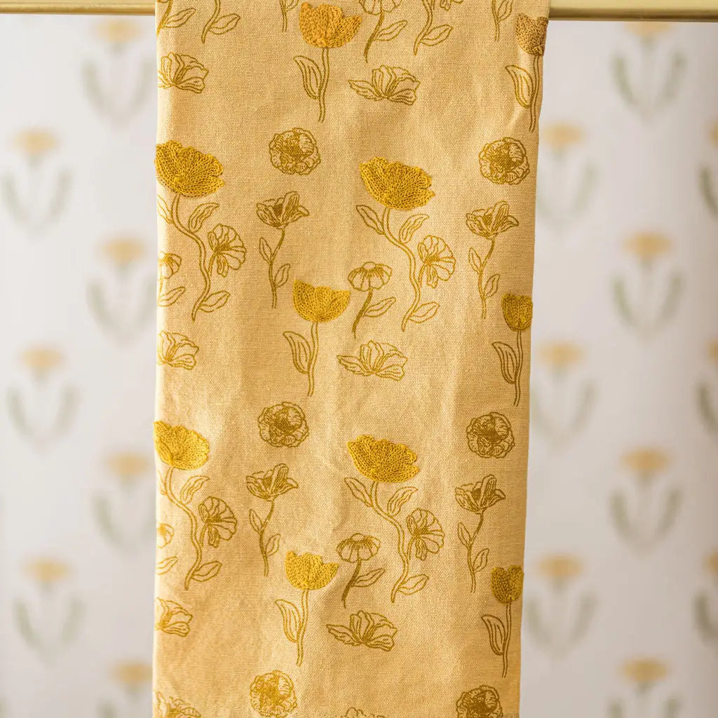 • Yellow Poppy Embroidered Tea Towel