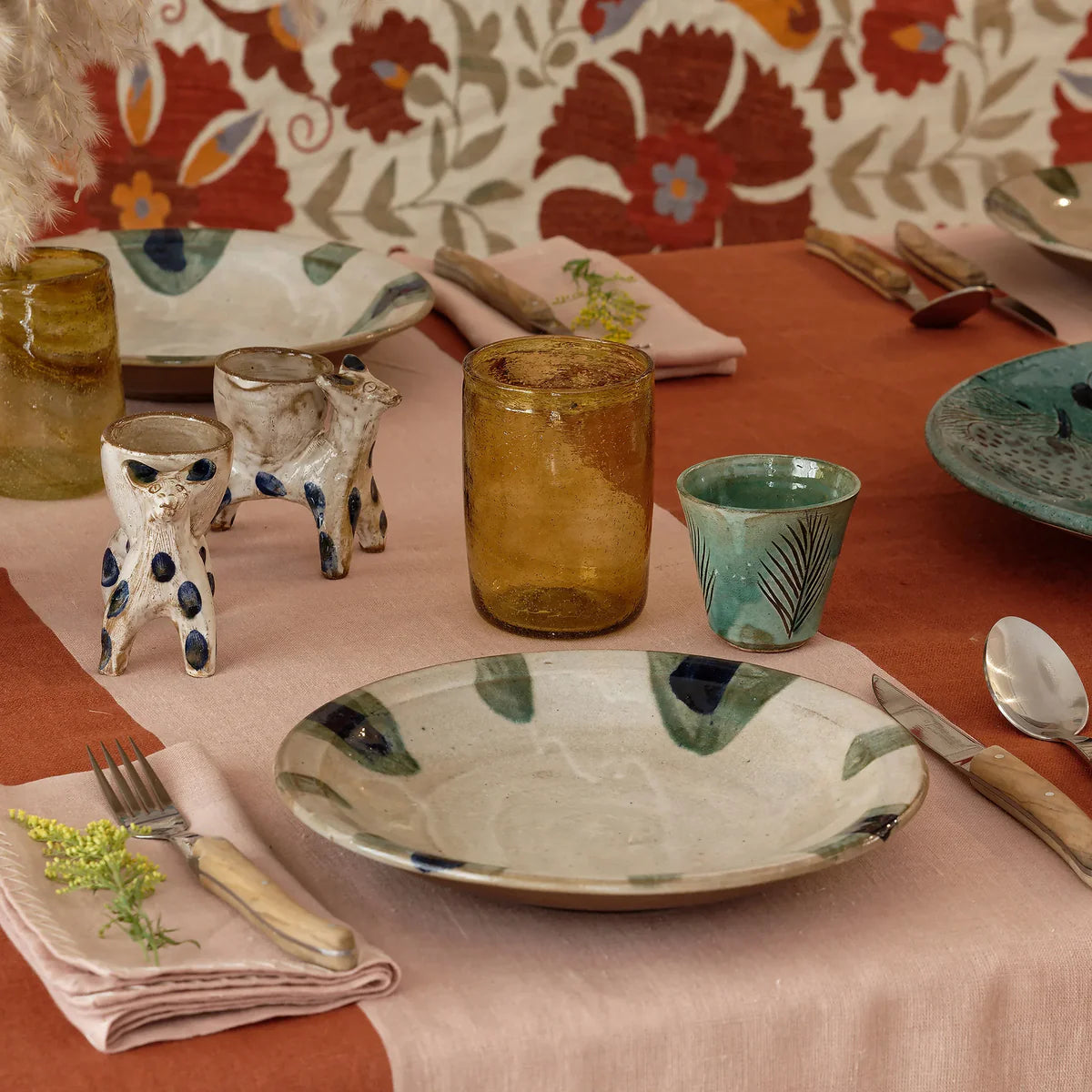 This charming Salt And Pepper Set features two goats with unique sculpted details. Each goat serves as a functional vessel for seasoning your meals. Adorned with playful hand-painted patterns, this whimsical set adds a touch of fun and practicality to your dining experience.