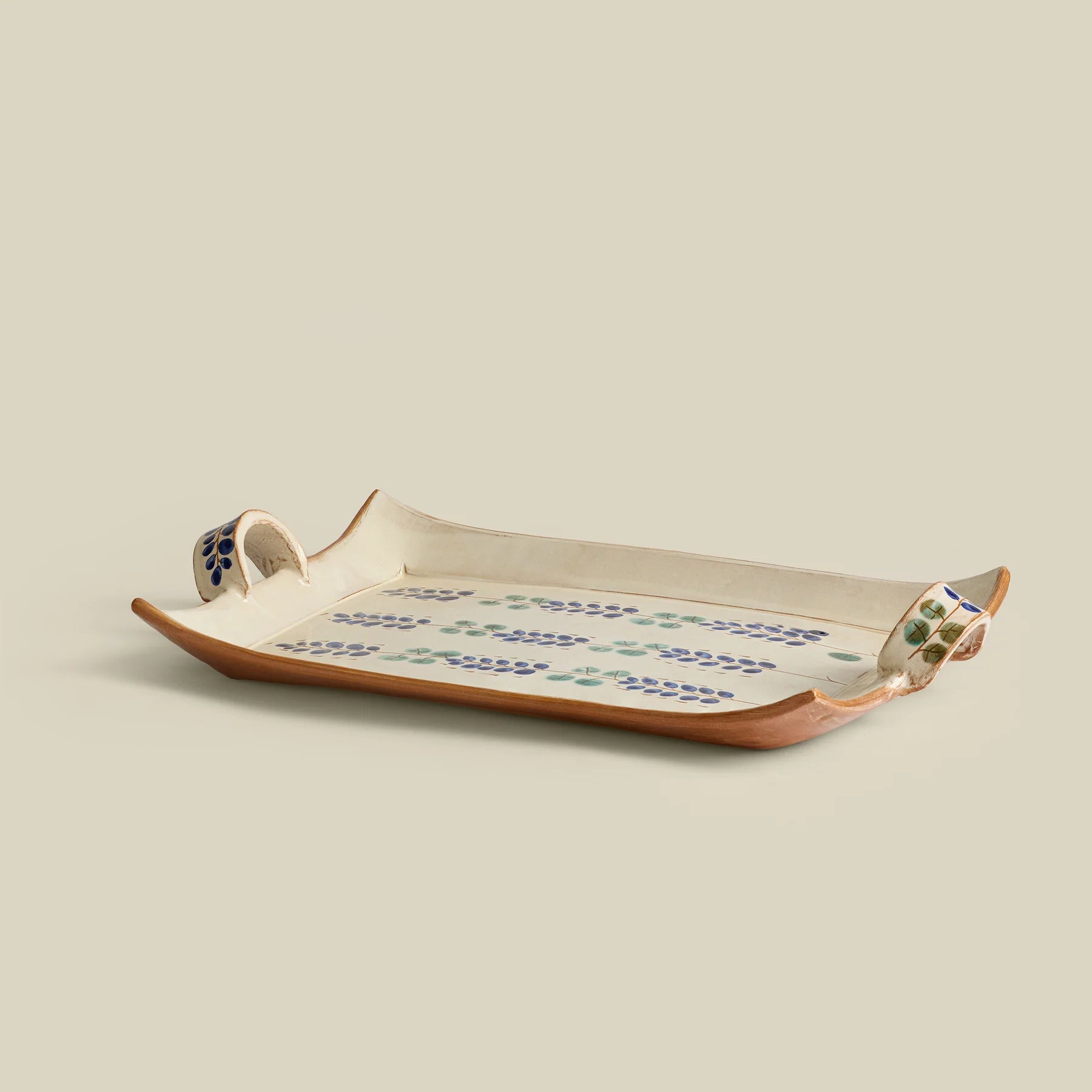 Generous enough to carry glasses, cups, or a spread of small dishes, it earns its place at any gathering. It works just as well resting on a sideboard or coffee table as a decorative object that happens to be useful. A piece that is as considered on its own as it is as part of a whole collection.